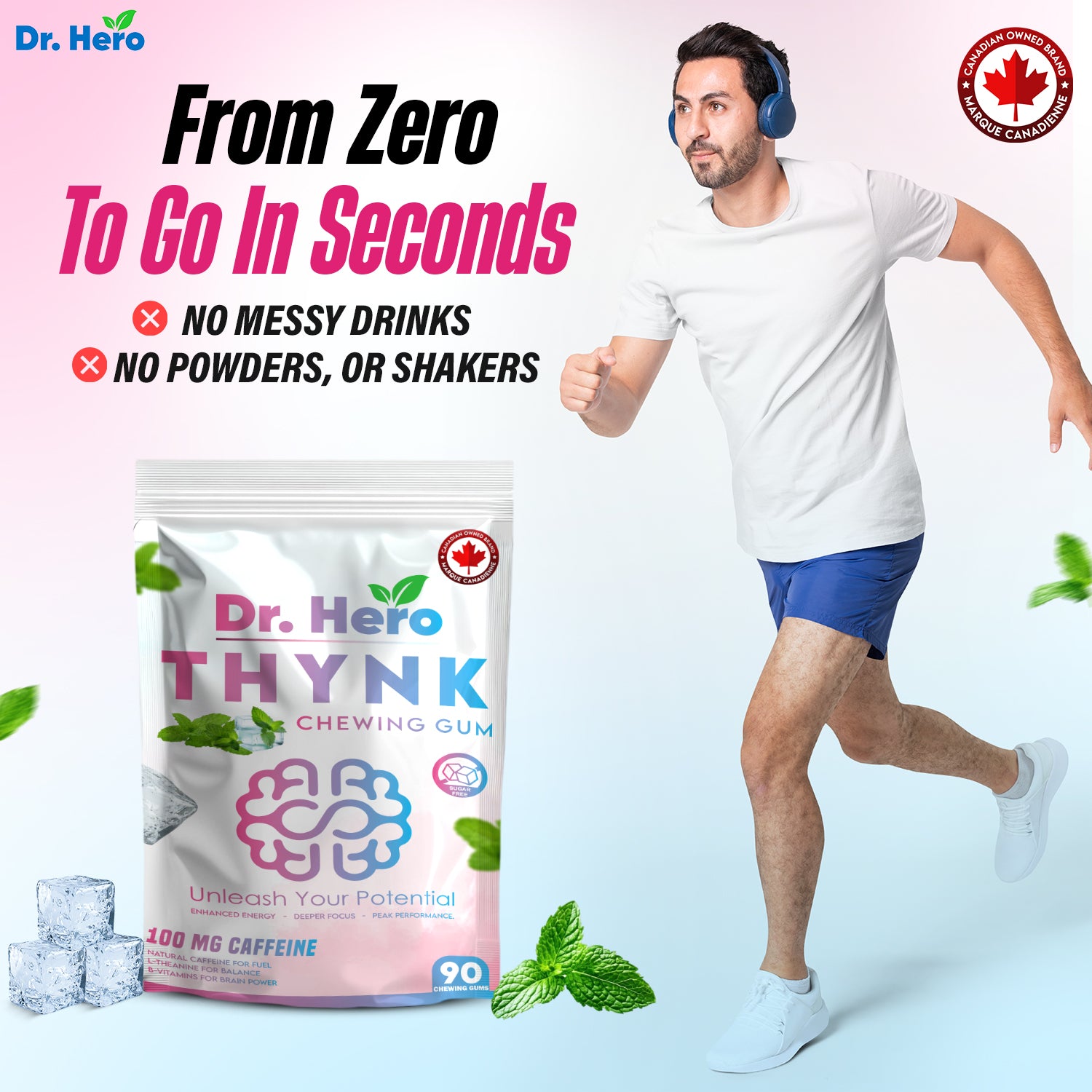 Dr Hero Energy Gum – 100 mg Caffeine Per Piece – Fast-Acting Energy
